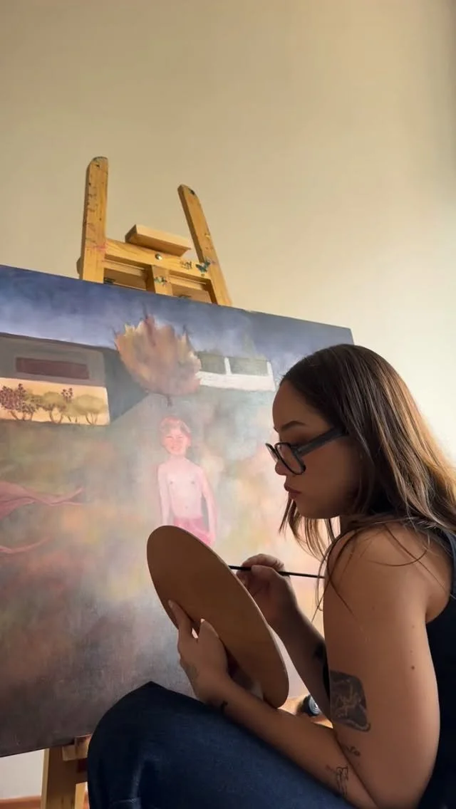 Sofía García’s practice centers on the representation of the human body as a site of emotional and symbolic tension. Through oil painting, charcoal, graphite, and the use of three chalks, her work develops a visual language that moves between technical precision and a visceral exploration of the figure.